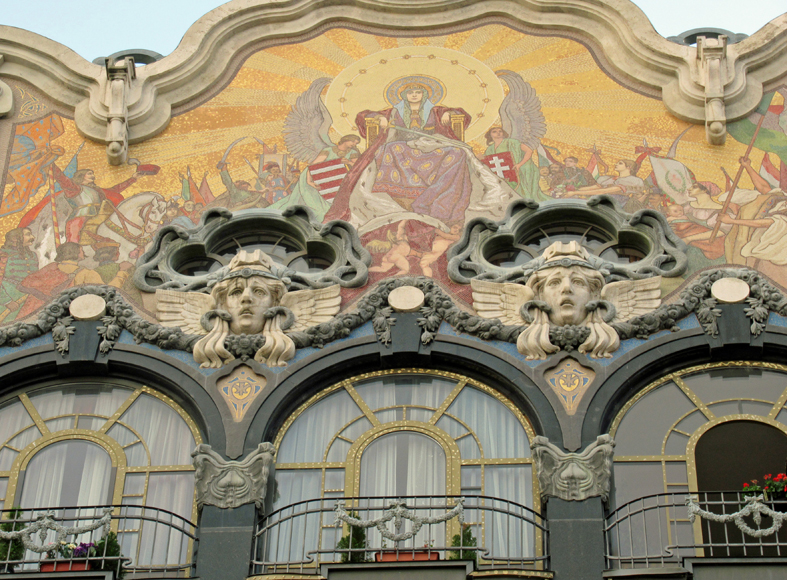 La mosaïque, intitulée « Gloire à la Hongrie » est l’œuvre de Miksa Roth. Les anges et les bergers entourent la Vierge,(Sainte Patronne de la Hongrie) vers laquelle accourent Ferenc Rackoczi, le Comte Istvan Szechenyi et Lajos Kossuth tous trois grandes figures de l’histoire de la Hongrie et ardents défenseurs de leur Patrie.