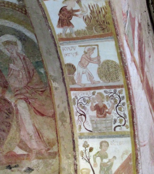 La voûte au-dessus du choeur est décorée d’un calendrier des saisons qui représente les travaux des champs.( 12 ème et 13ème siècle.)
