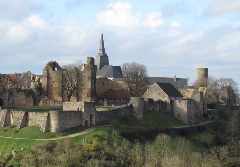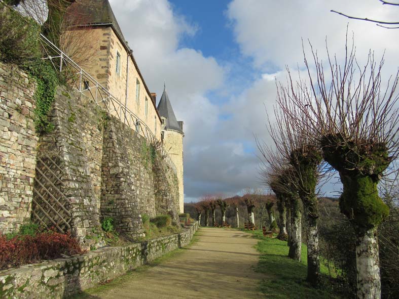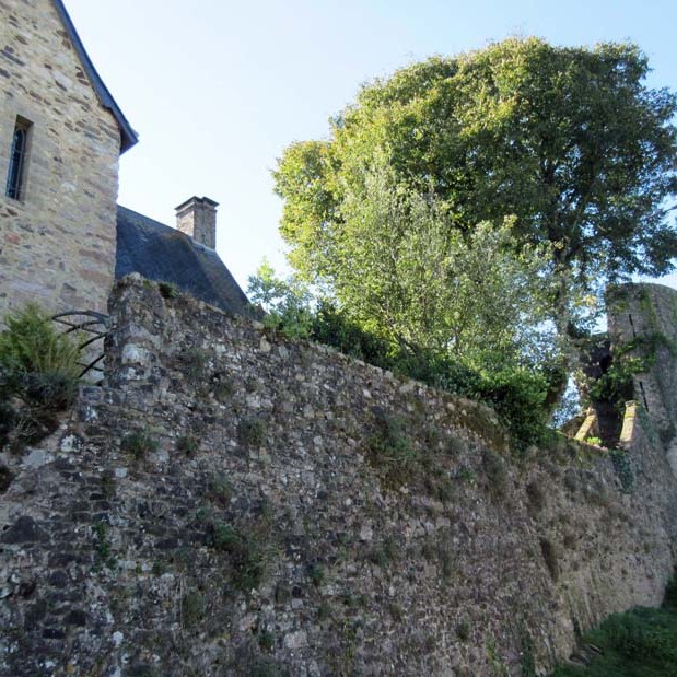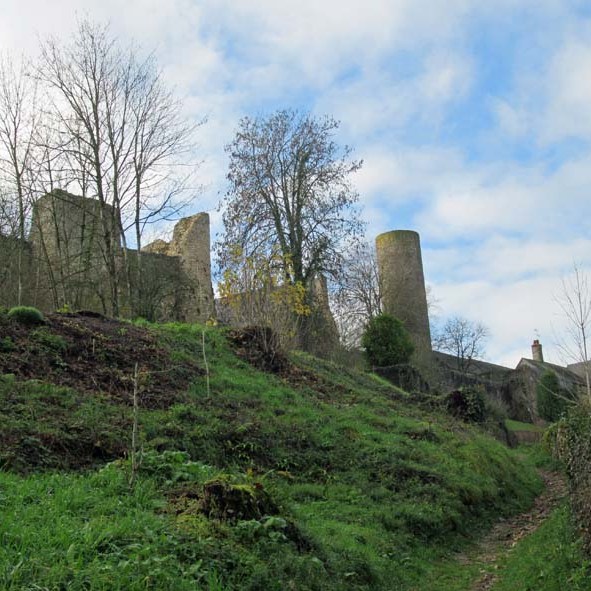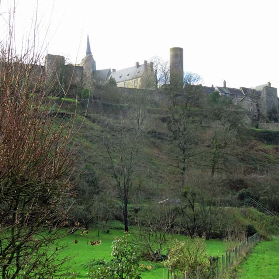 Dominant la vallée de l’Erve, les remparts ceinturent la ville sur ses flancs Sud et Est.