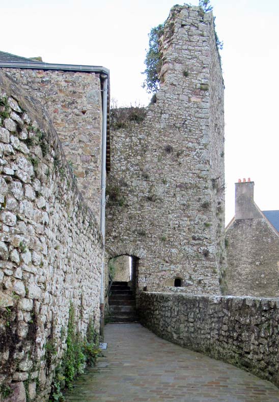 La Promenade de la Poterne, est un chemin qui longe les remparts Sud et Est. On peut admirer la tourelle du Logis du château d’une part …