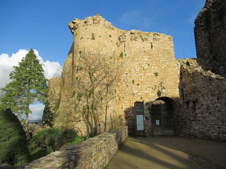 L’accès à l’enceinte du Château de nos jours se fait par la porte qui se trouve entre le donjon et l’ancienne boulangerie.