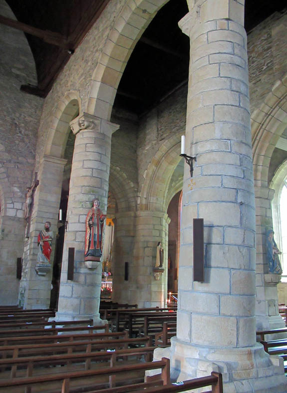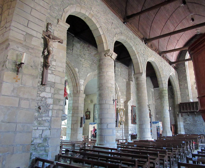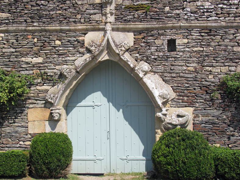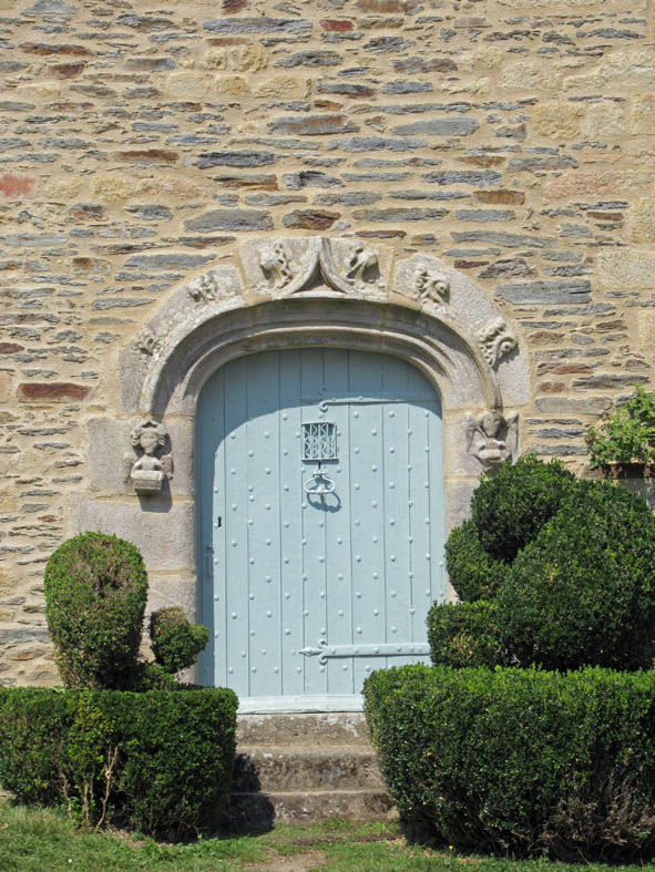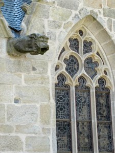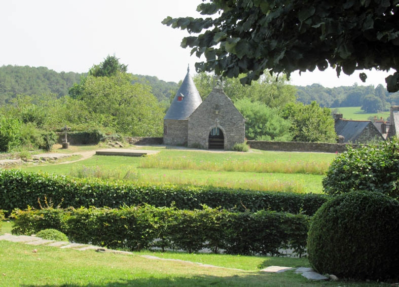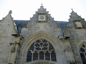 Notre-Dame de la Tronchaye. Encore une belle surprise que cette église avec son clocher roman et sa façade de style gothique flamboyant. Son nom? Elle le doit bien sûr à une légende, nous sommes en Bretagne! de même que son emplacement qui surprend parce qu’en contrebas. En effet, pendant les invasions normandes, au 10ème siècle, un prêtre aurait caché une statue de la Vierge et l’Enfant dans un tronc d’arbre (tronchaye) à cet endroit. Deux siècles plus tard, une bergère l’aurait trouvée et on aurait donc construit l’église à l’endroit même de la découverte.