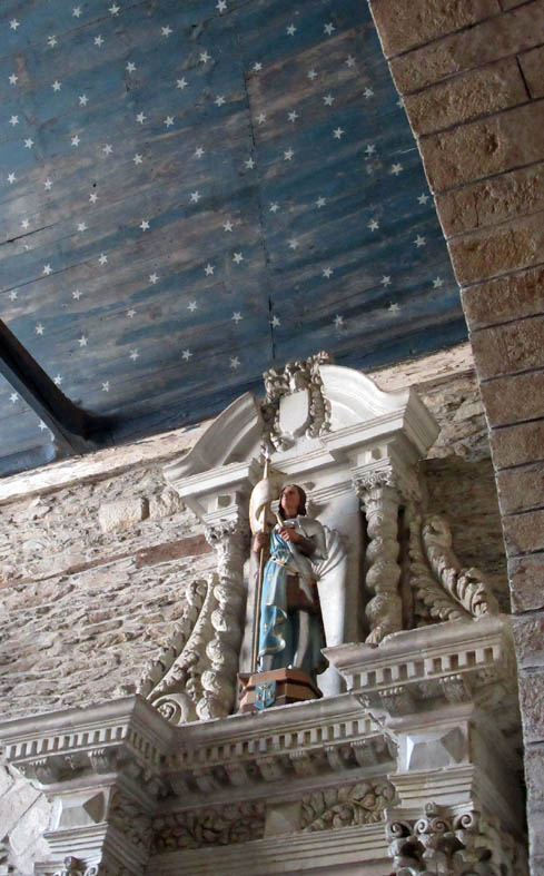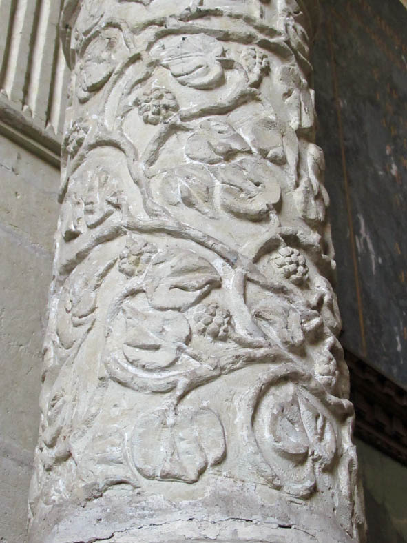 Construite à même la roche, en l’occurence, du schiste, l’église a suivi les mouvements du sol et l’on remarque d’emblée la curieuse inclinaison des colonnes. D’où les multiples rajouts au cours des siècles pour tenter de la stabiliser.