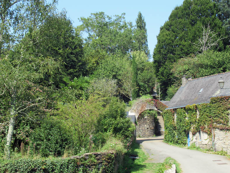 Quittons le haut du bourg et suivons la rue de l’Etang jusqu’à la porte du même nom. Au sud du village, cette porte était l’une des entrées de Rochefort en Terre et correspondait à la route du sel qui venait par la Vilaine de Guérande ou de la Roche-Bernard.