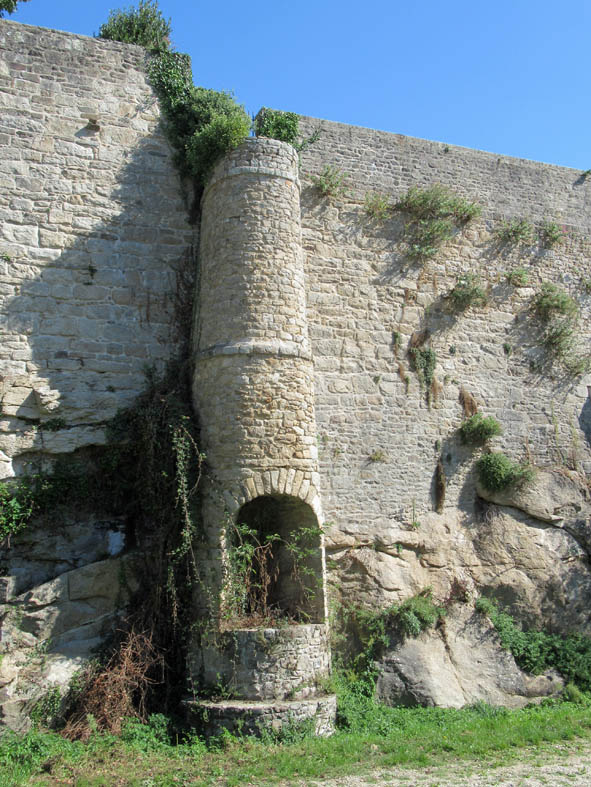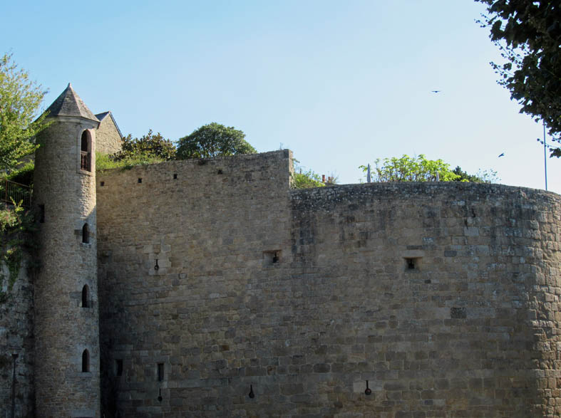 Après avoir parcouru les rues principales de la ville haute, redescendons par la rue des Fossés et ses larges escaliers qui débouchent sur la Promenade des Petits Fossés (au Sud-Ouest de la ville) pour longer les remparts qui mènent au château.