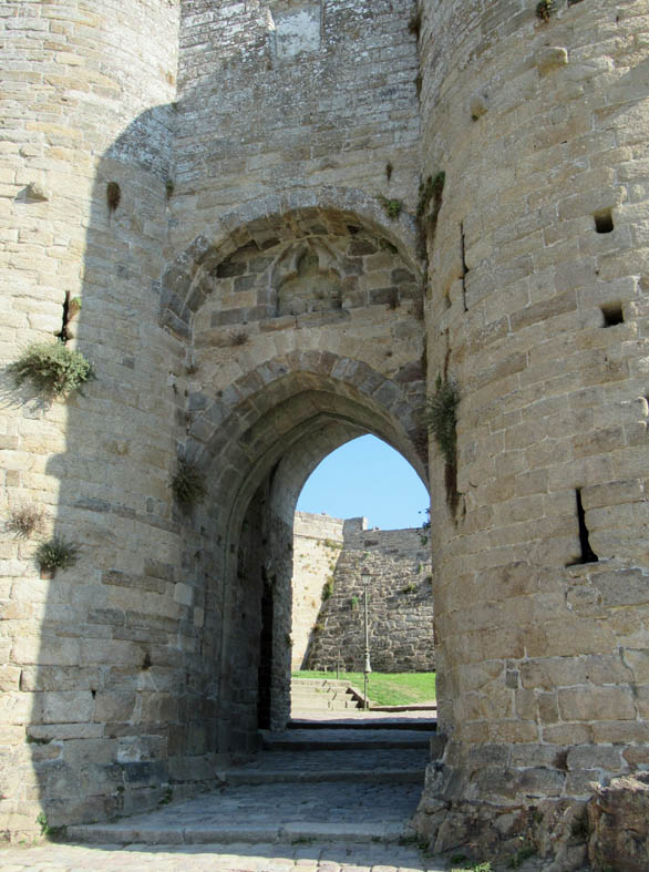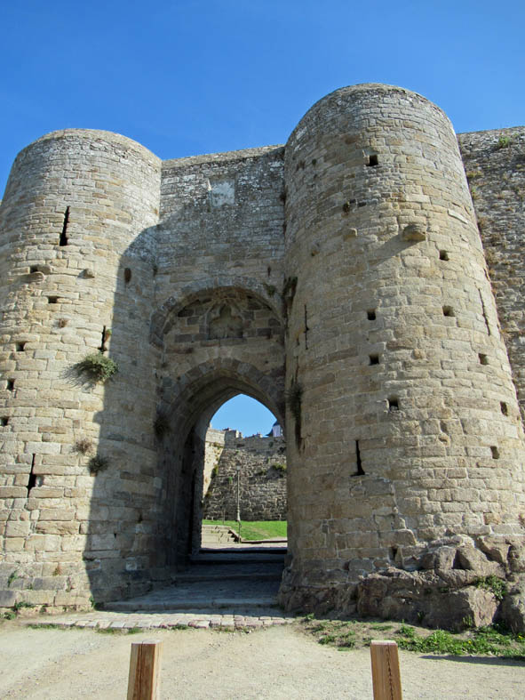 Pour entrer dans l’enceinte du Château, il vous faut passer sous l’imposante Porte du Guichet(13ème siècle) flanquée de ses deux tours circulaires.
