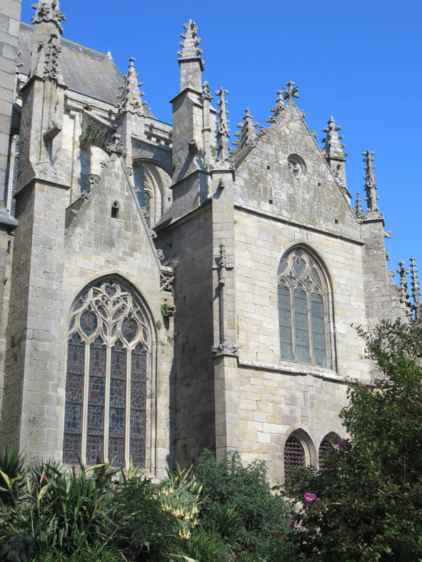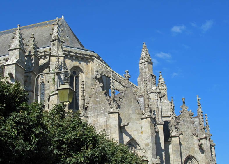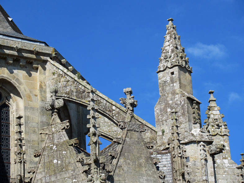 Pinacles, fleurons, gargouilles en pierre de granit typiquement bretonne se dressent comme pour mieux encercler le chevet.