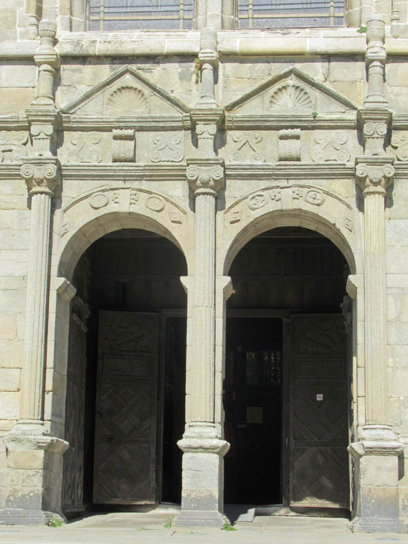 Mais c’est au 17ème siècle que le transept sud de l’église est achevé donnant à cette façade un aspect beaucoup plus sobre et classique. Trois colonnes cannelées surmontées d’un chapiteau ionique, deux frontons triangulaires ornés de coquilles confèrent à ce double porche de type Renaissance son caractère élégant.
