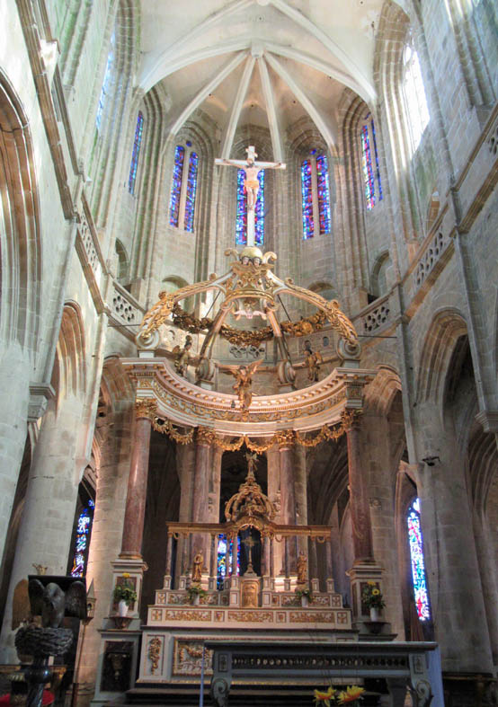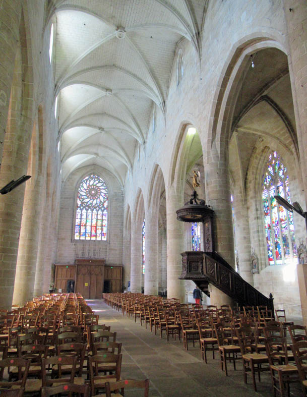 Le Chœur, bâti entre 1855 et 1865, respecte les plans du 15ème siècle et l’esprit du gothique breton: piles rondes et arcs en pénétration.