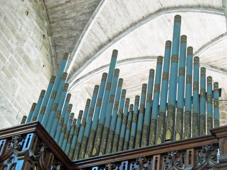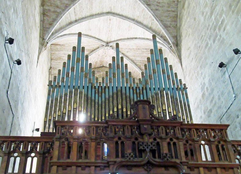Dans le croisillon sud du Transept, les Grandes Orgues, (1889) aux magnifiques tuyaux peints sont l’œuvre du facteur anglais Oldknow .