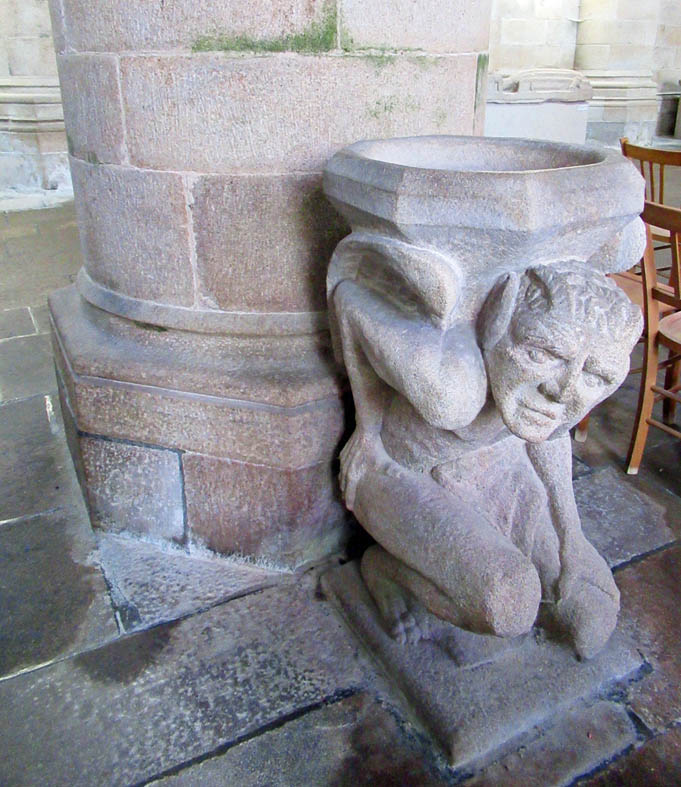 Ce bénitier de forme octogonale, porté par le démon est l’ œuvre d’ouvriers dinannais du 19ème siècle, Louis Bouchet et Jean Delaune.