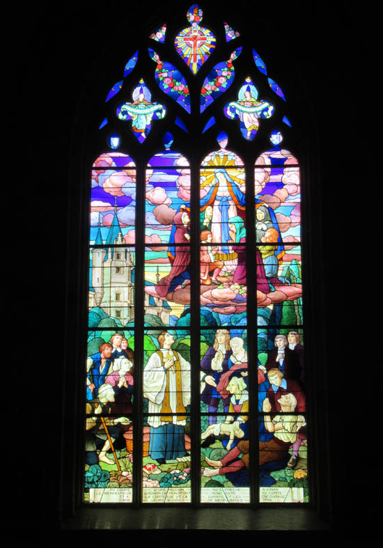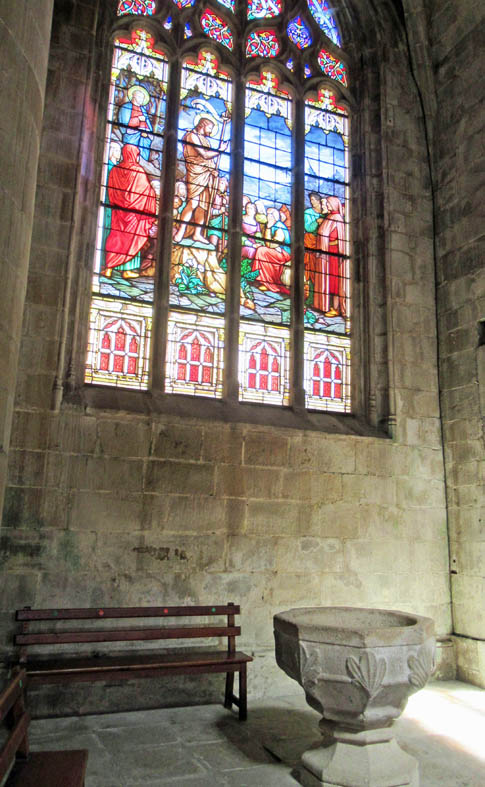 Les vitraux du bas-côté nord illustrent l’histoire de Dinan.