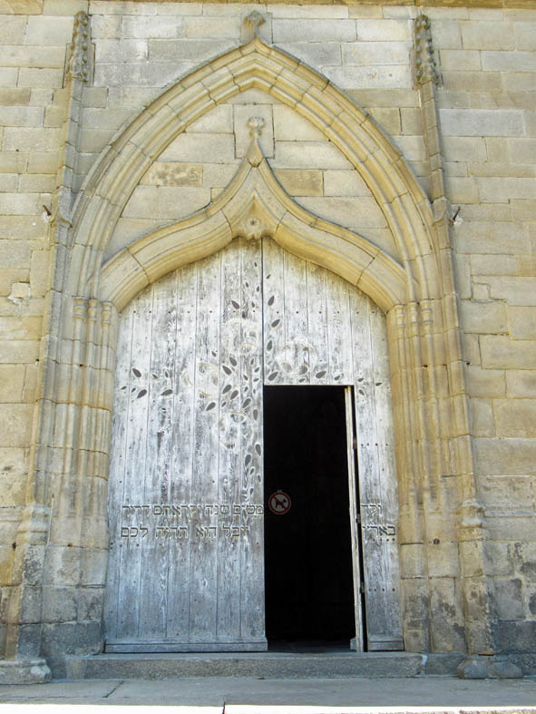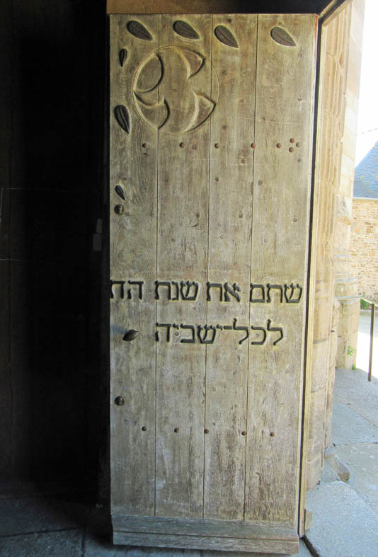 Dans la partie occidentale de l’église, cette porte en bois, dite porte du Jubilé, crée la surprise avec son inscription en hébreu. Il s’agit d’ un verset extrait du Lévitique (Lév. 25, 10)