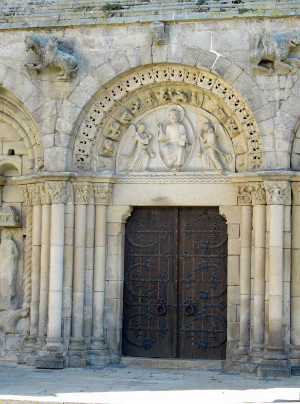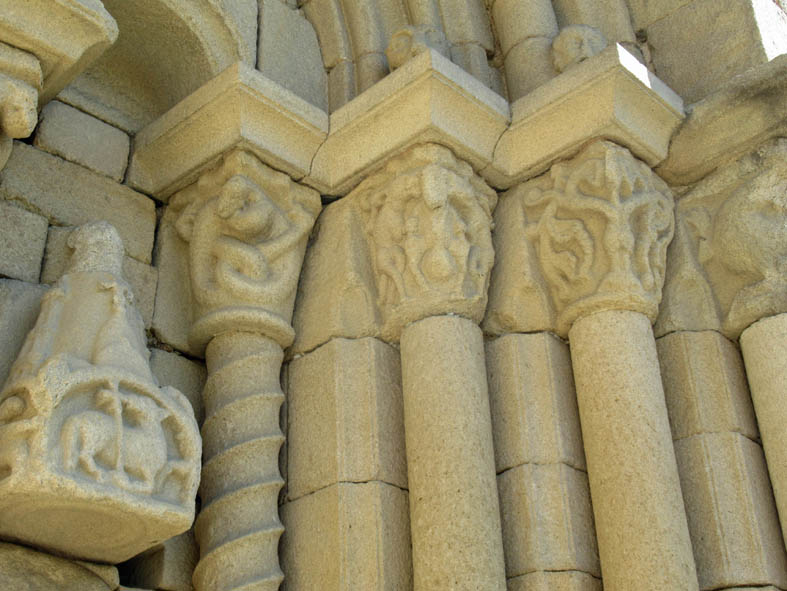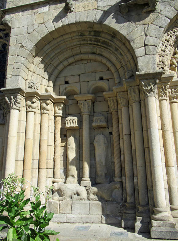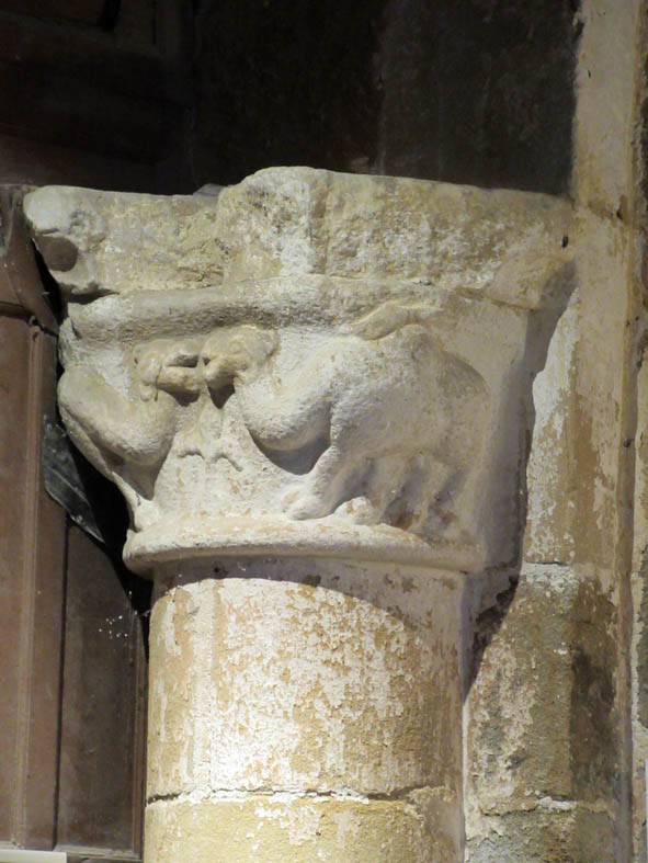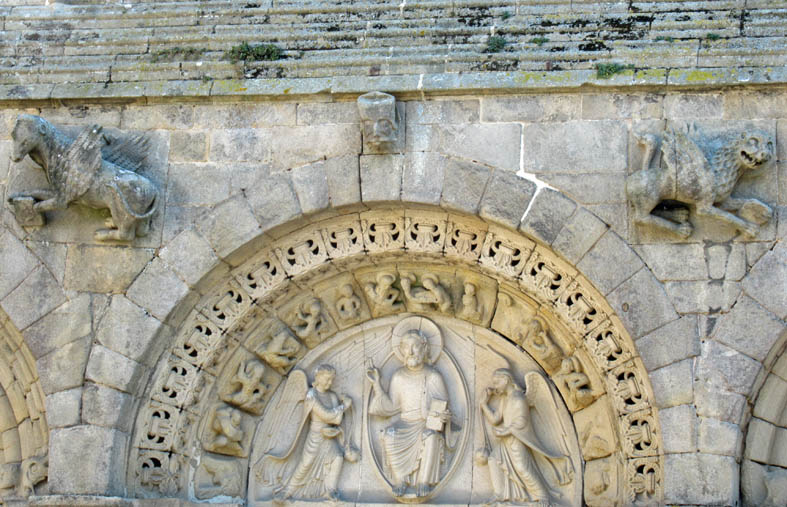Le porche ouest et ses sculptures d’animaux fantastiques, de saints et de « pauvres pêcheurs » rappellent aux fidèles ce qui sépare le Bien du Mal. La présence de lions sous les statues interroge…influence orientale?